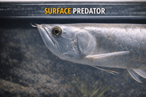 The “Surface Feeding” Habit: Always feed your Arowana food that floats. Since their mouths are shaped like a “trap door” that opens upward, it is difficult for them to eat food that sinks to the bottom.